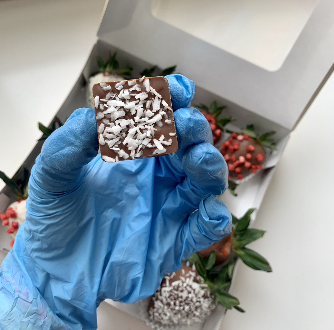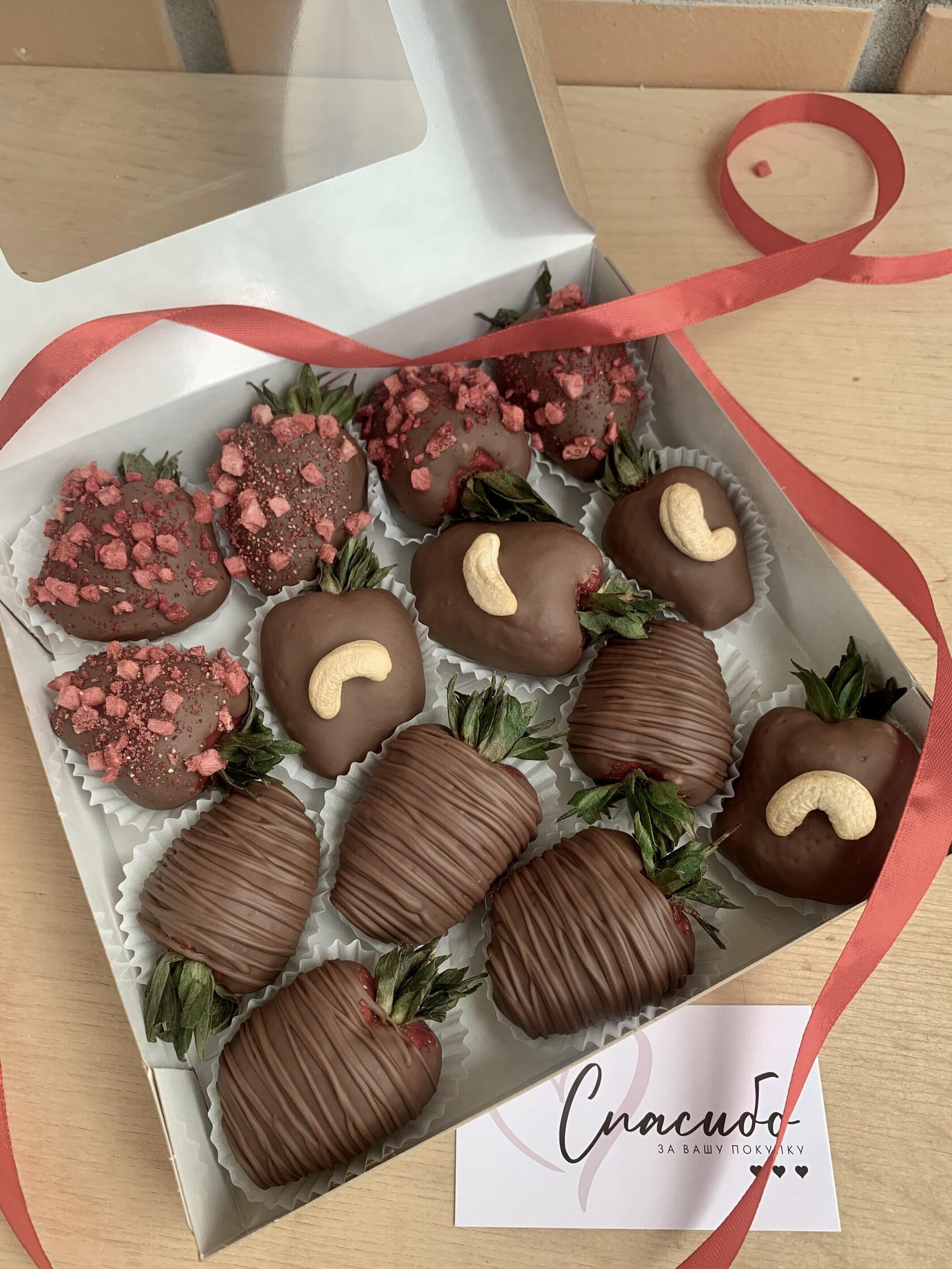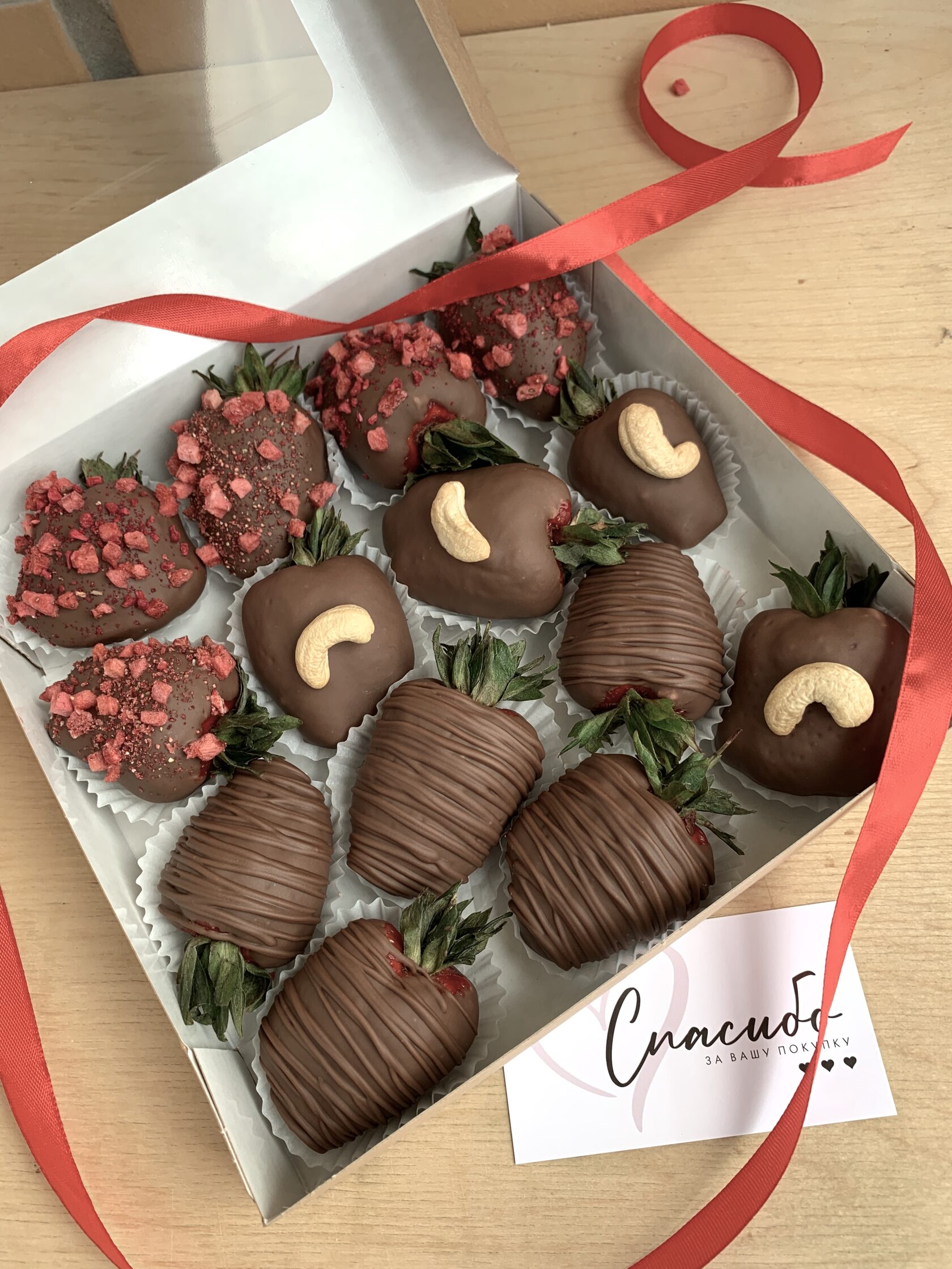 ✅ Каждая ягодка проходит наш тщательный отбор ✅ Только премиальные сорта бельгийского шоколада (callebaut) ✅ Для украшения ягод мы используем только свежие орехи, сублимацию и нежную кокосовую стружку