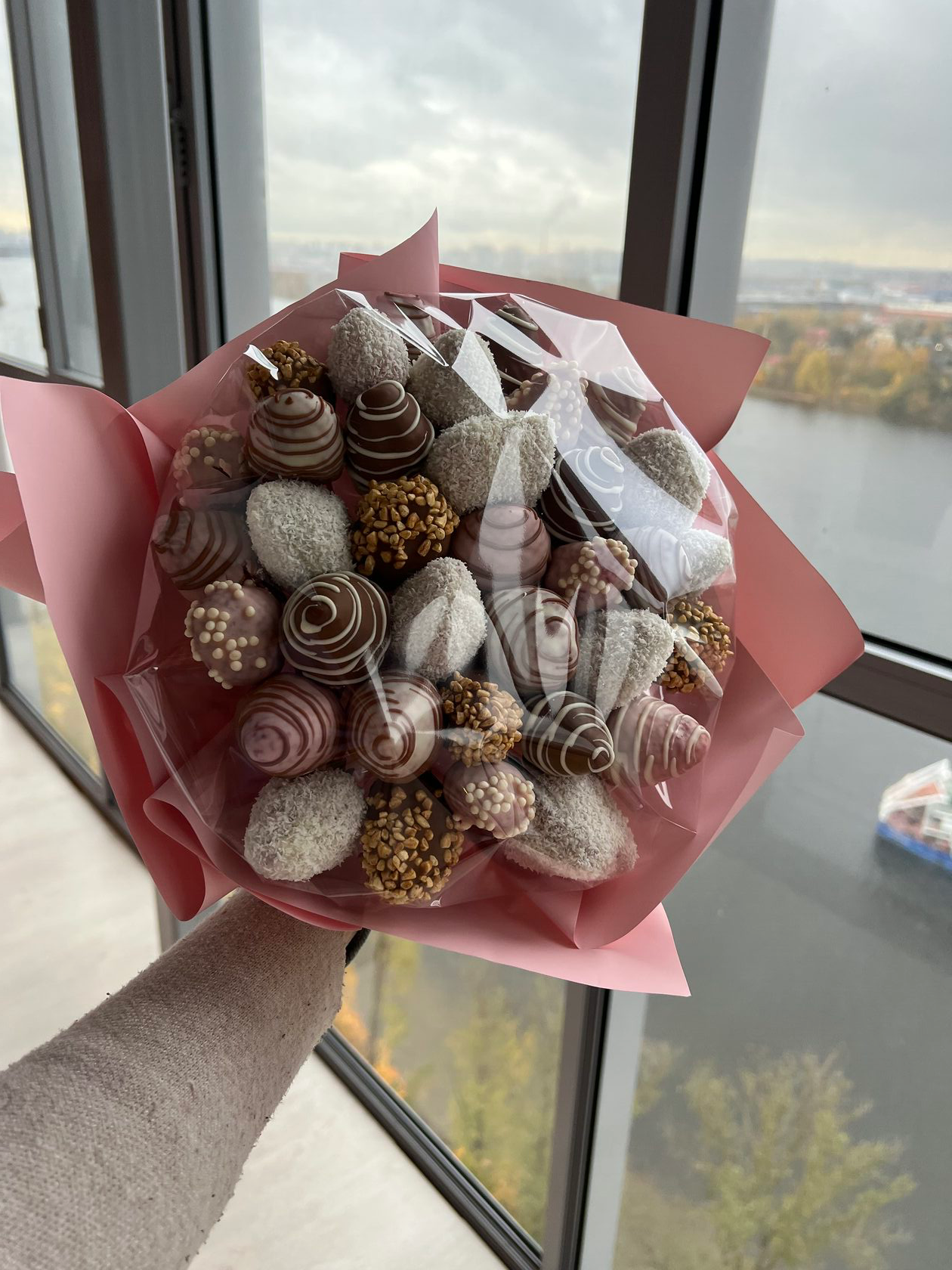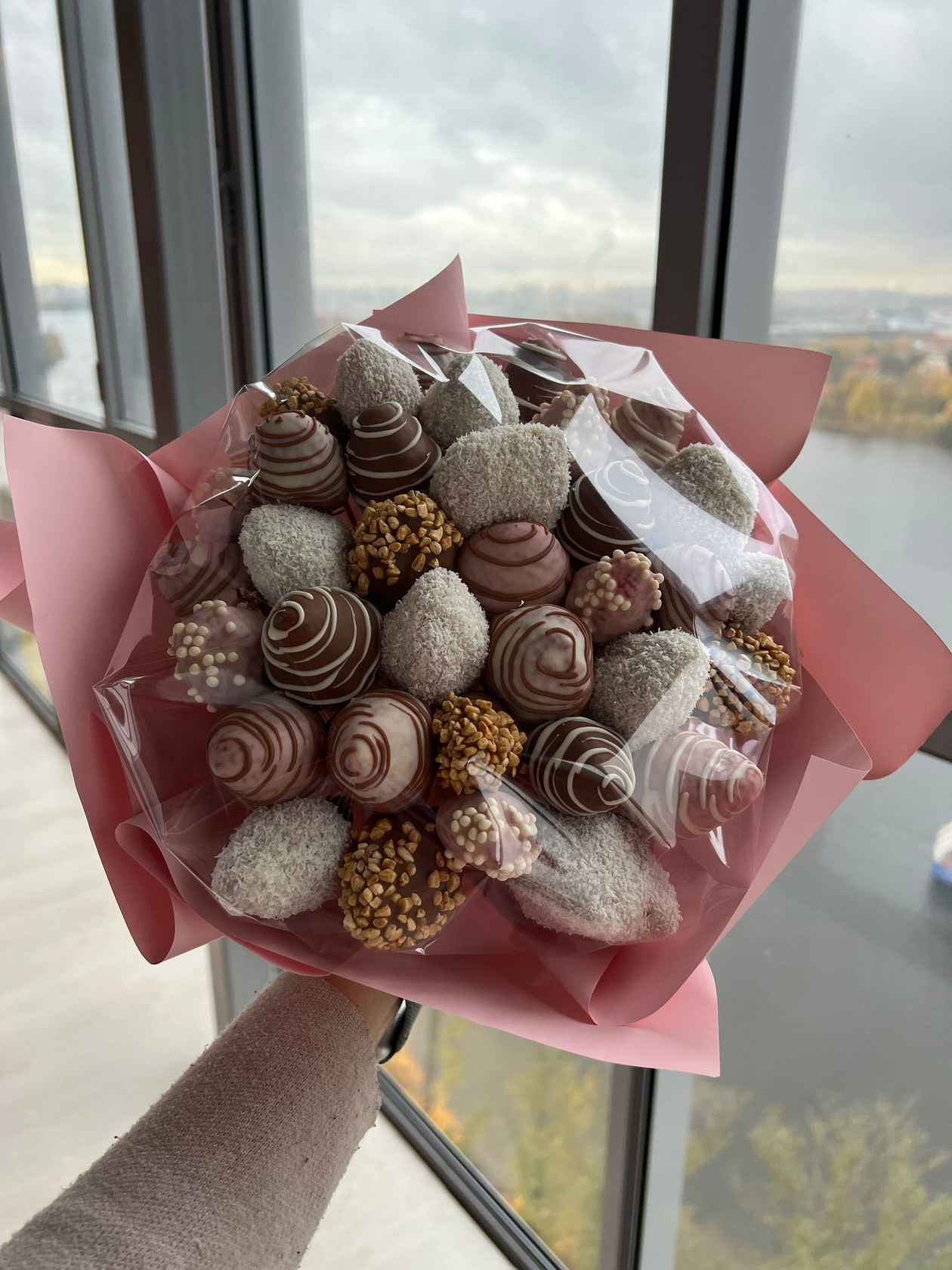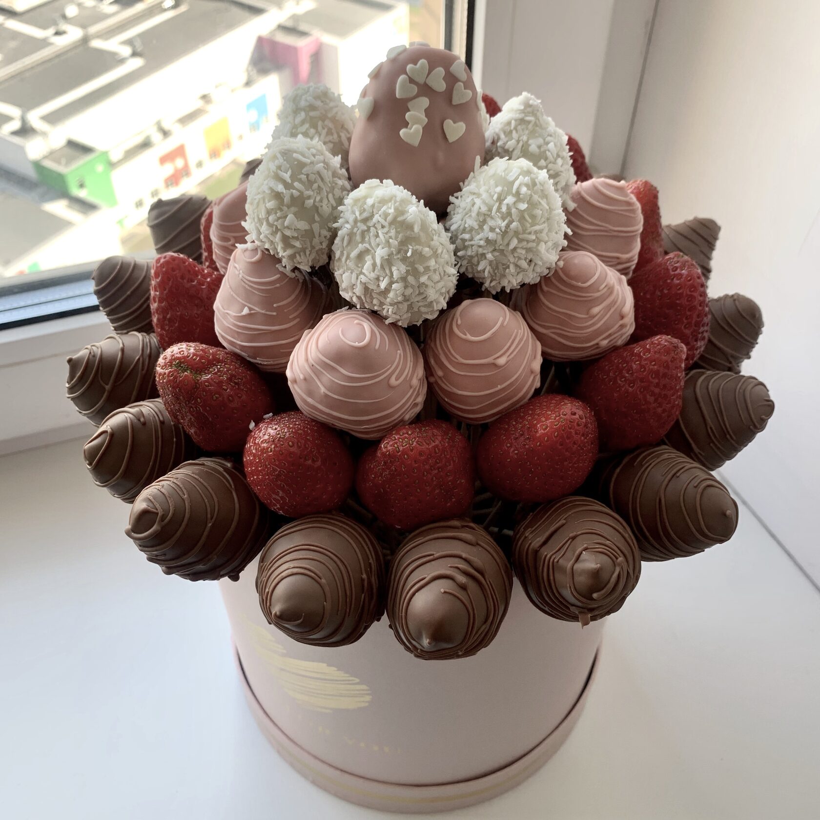 ✅ Каждая ягодка проходит наш тщательный отбор ✅ Только премиальные сорта бельгийского шоколада (callebaut) ✅ Для украшения ягод мы используем только свежие орехи, сублимацию и нежную кокосовую стружку