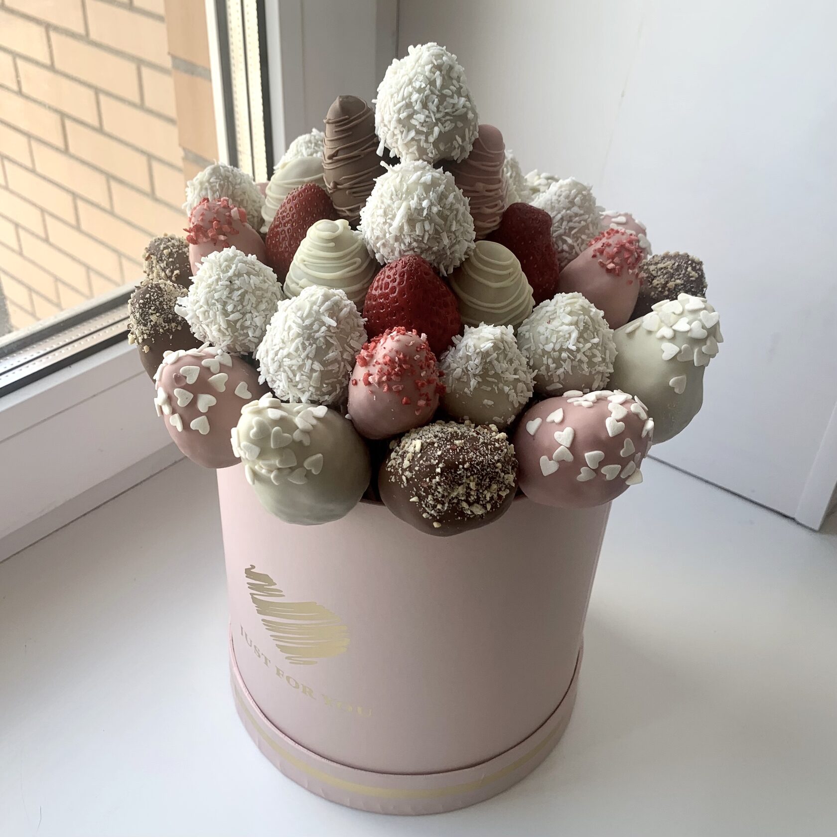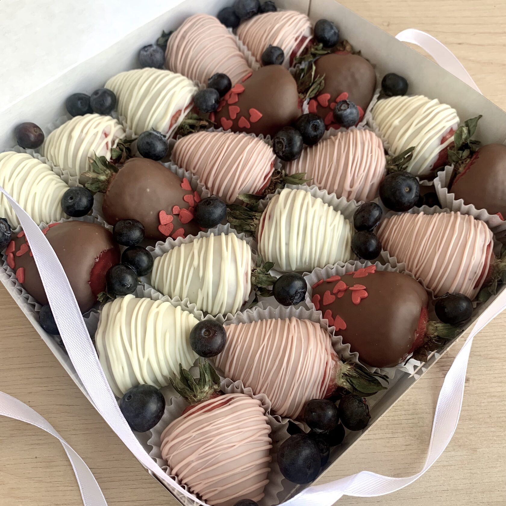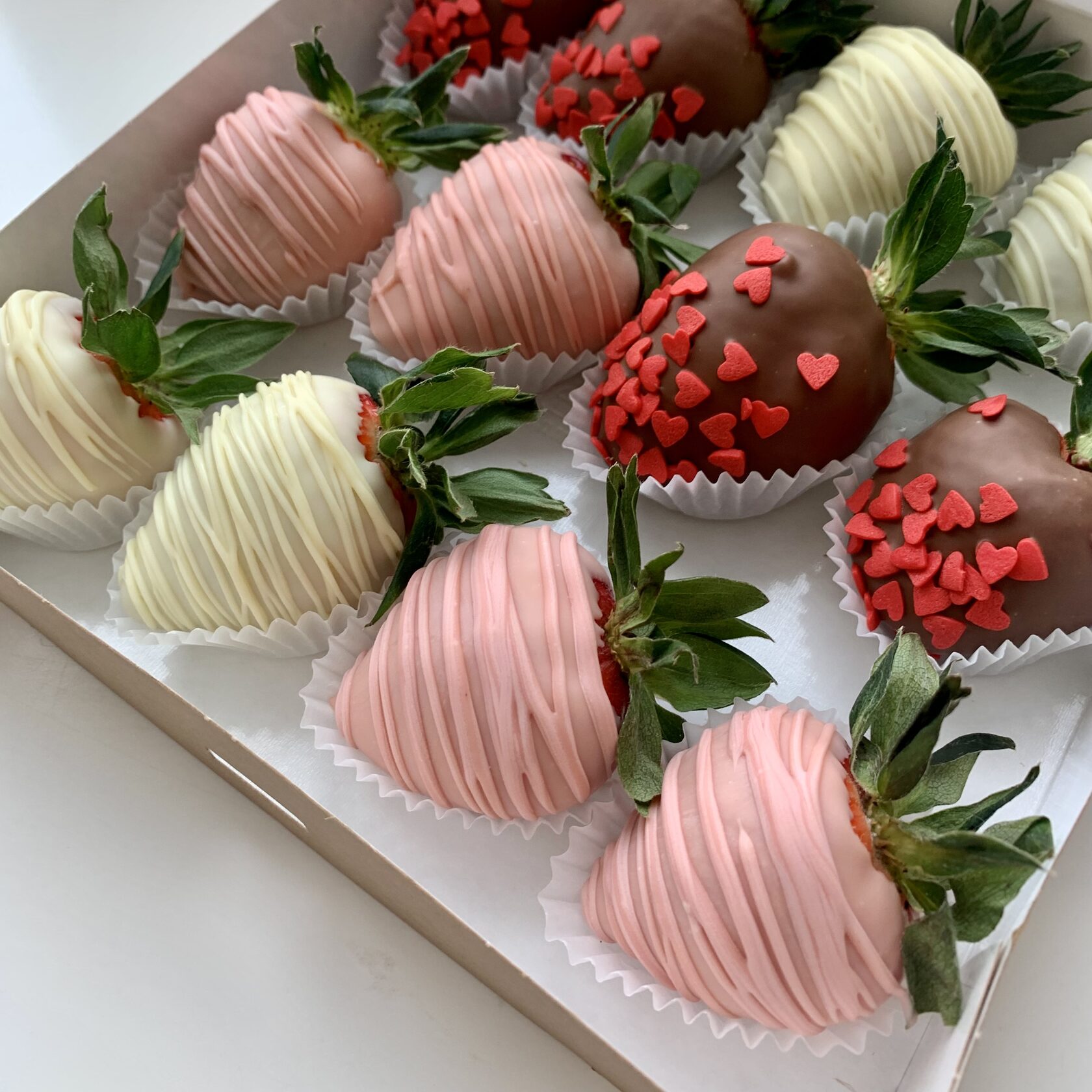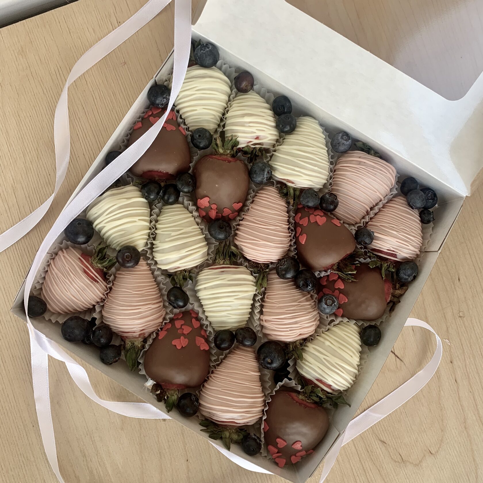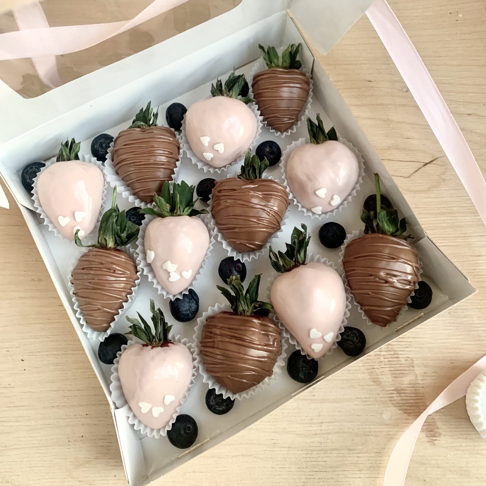 🍓в белом (с добавлением натурального гипоалергенного пищевого красителя) бельгийском шоколаде с кондитерской посыпкой (2 шт). 🍓в белом бельгийском шоколаде с кондитерской посыпкой (2 шт). 🍓в молочном бельгийском шоколаде с украшением из белого шоколада и кондитерской посыпки (2 шт). 🍓в молочном бельгийском шоколаде с дробленным орехом (2 шт). 🍓в белом молочном шоколаде с сублимированной клубникой и бананом (2 шт). 🍓в молочном бельгийском шоколаде с сублимированной клубникой и бананом (2 шт).