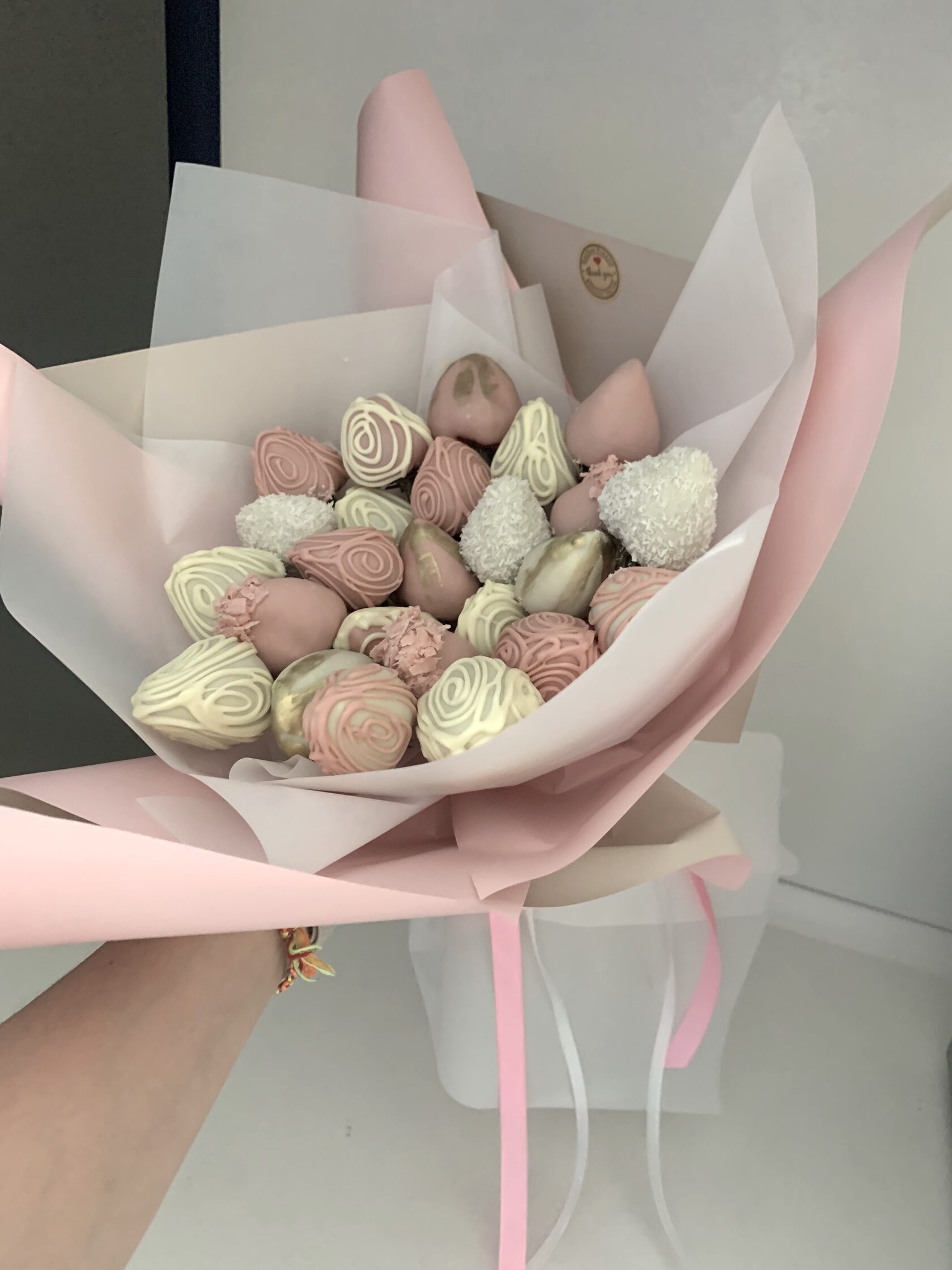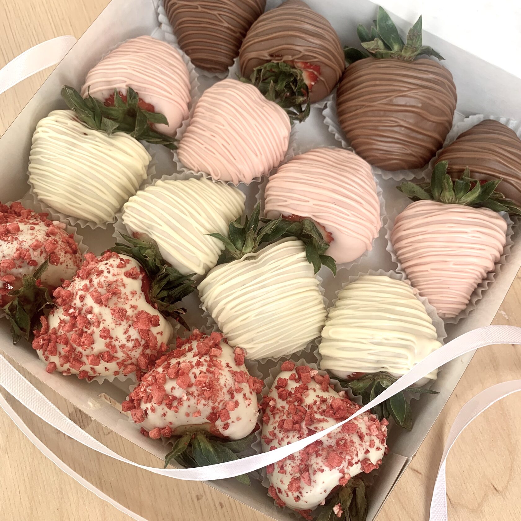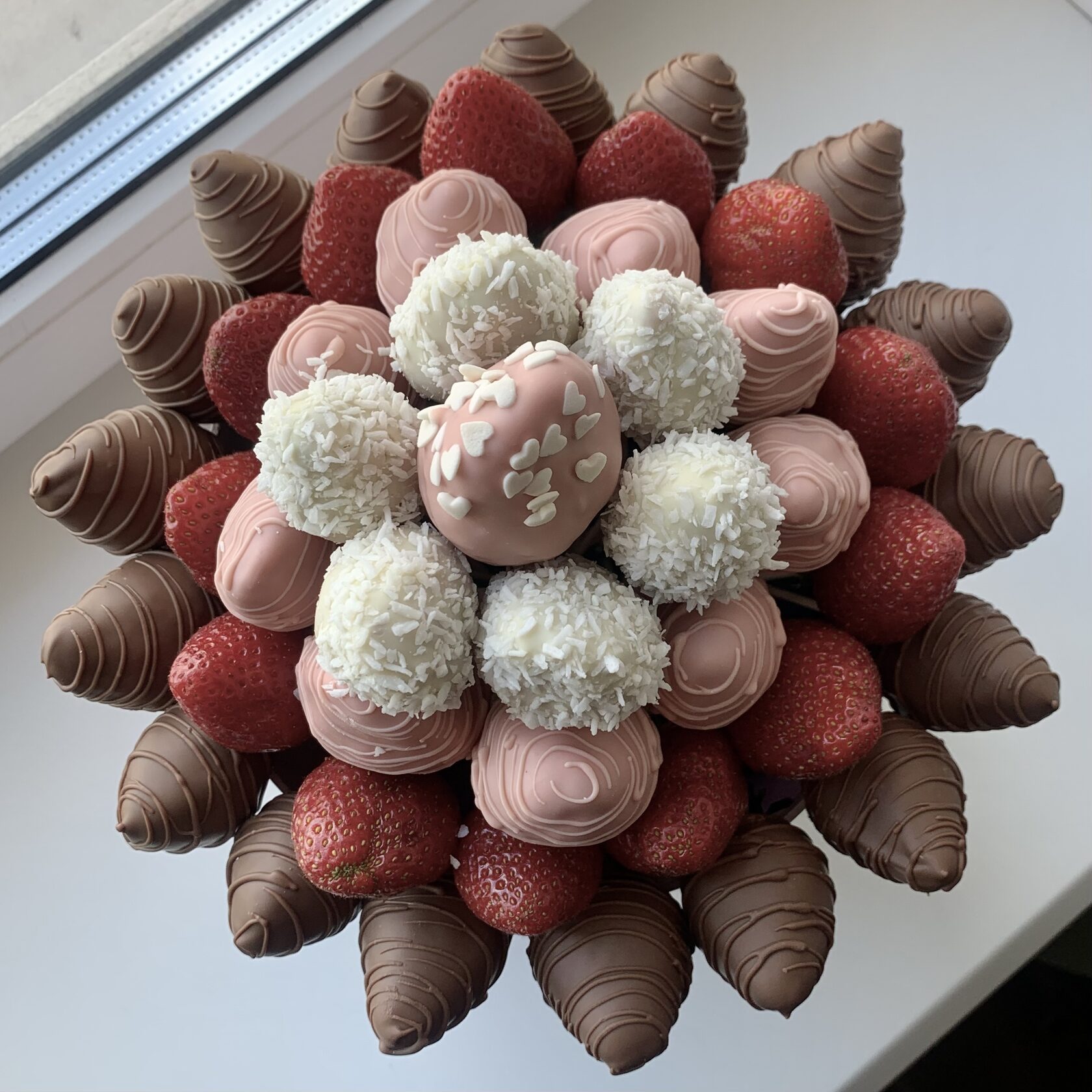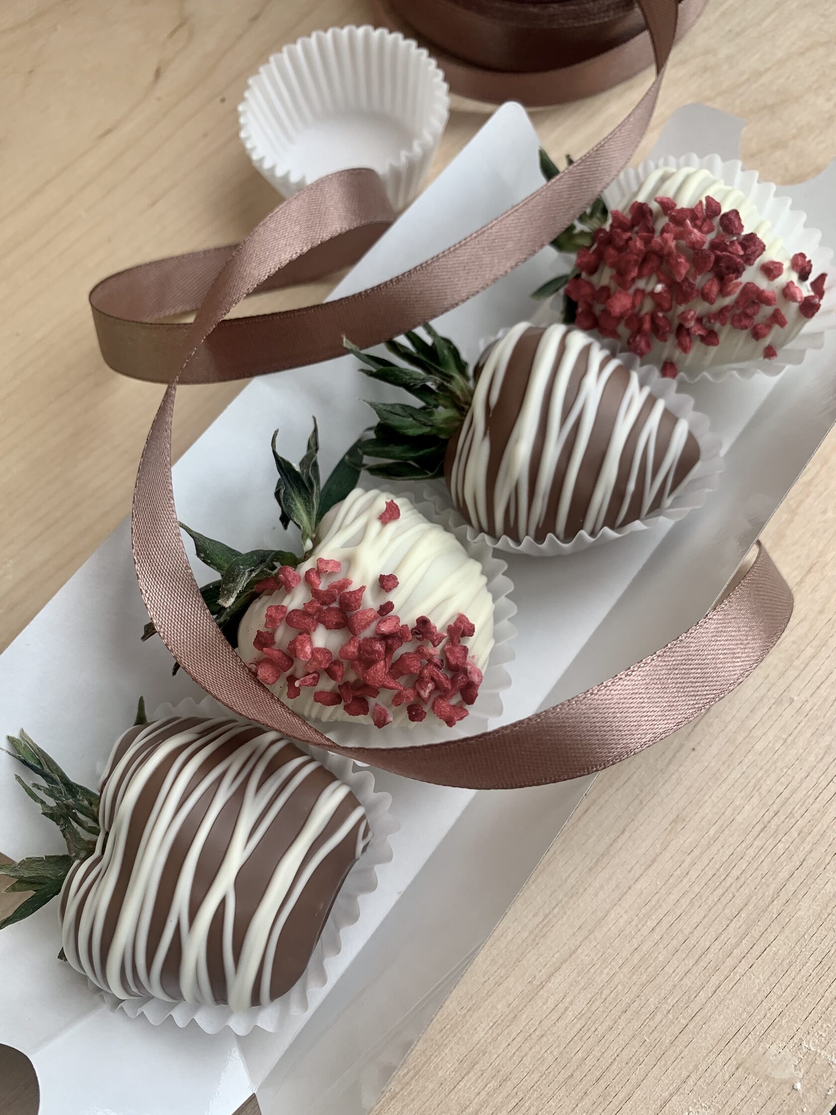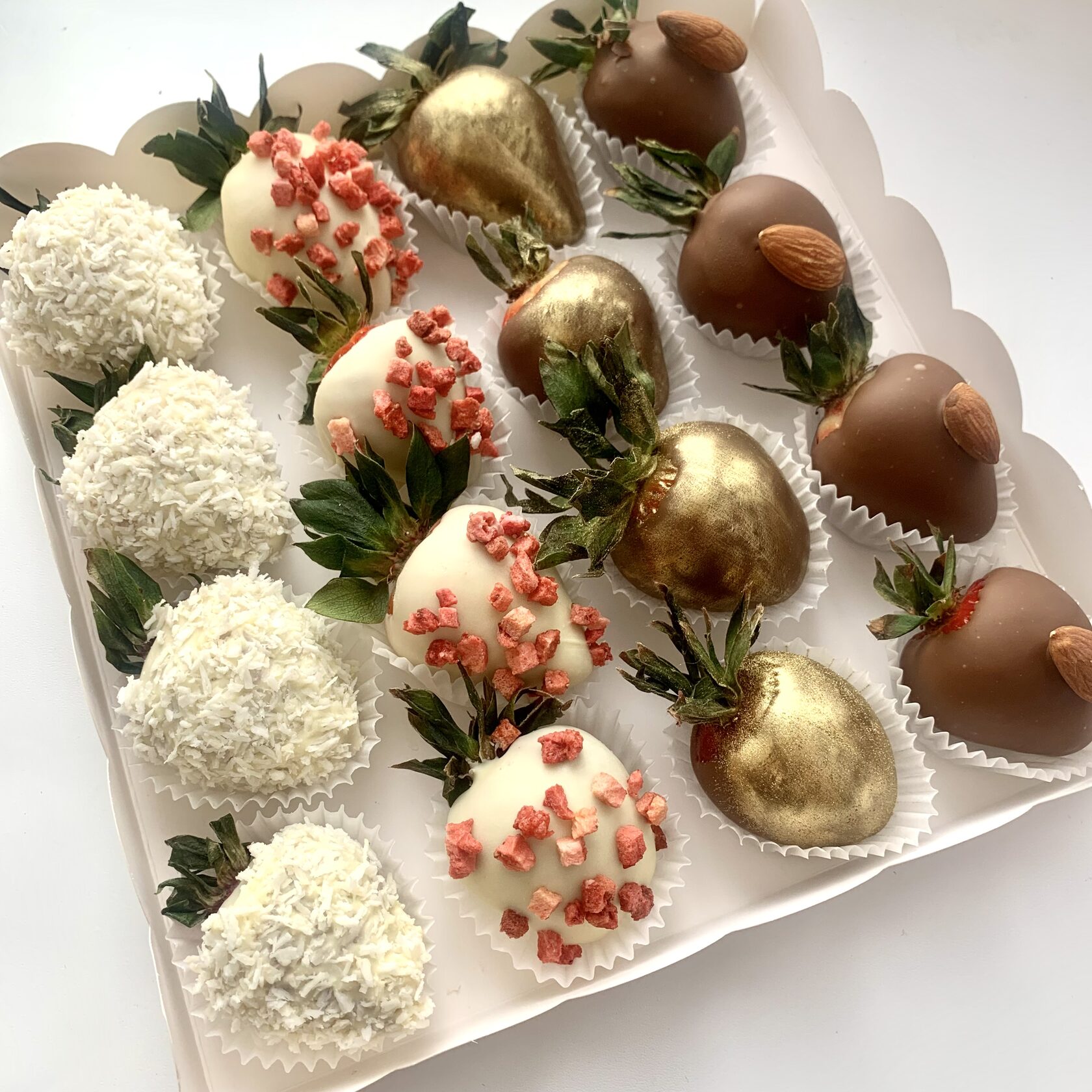 🍓в белом (с добавлением натурального гипоалергенного пищевого красителя) бельгийском шоколаде с кондитерской посыпкой (2 шт). 🍓в белом бельгийском шоколаде с кондитерской посыпкой (2 шт). 🍓в молочном бельгийском шоколаде с украшением из белого шоколада и кондитерской посыпки (2 шт). 🍓в молочном бельгийском шоколаде с дробленным орехом (2 шт). 🍓в белом молочном шоколаде с сублимированной клубникой и бананом (2 шт). 🍓в молочном бельгийском шоколаде с сублимированной клубникой и бананом (2 шт).