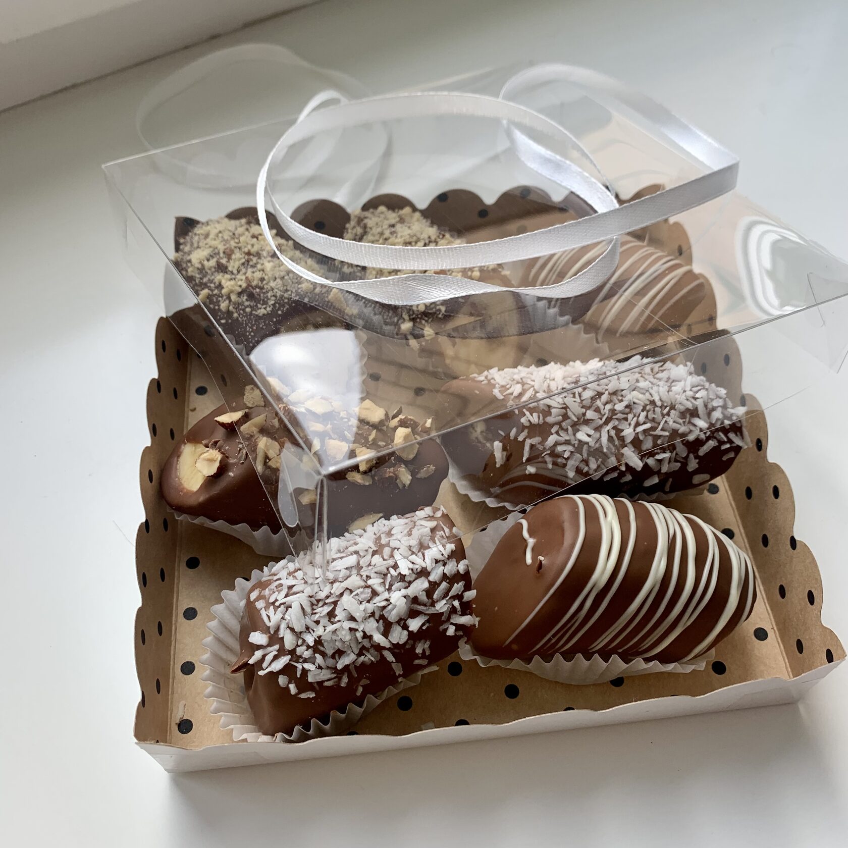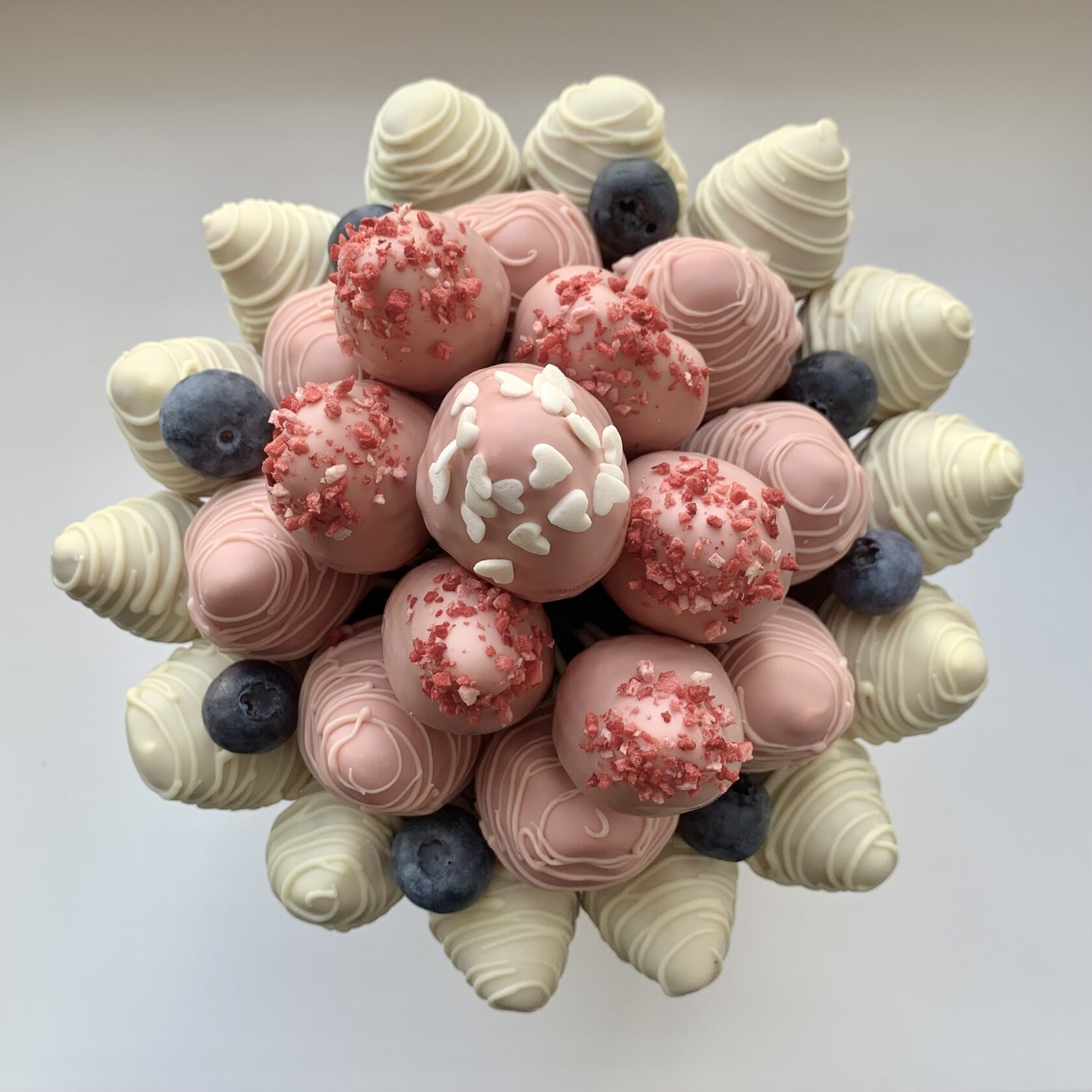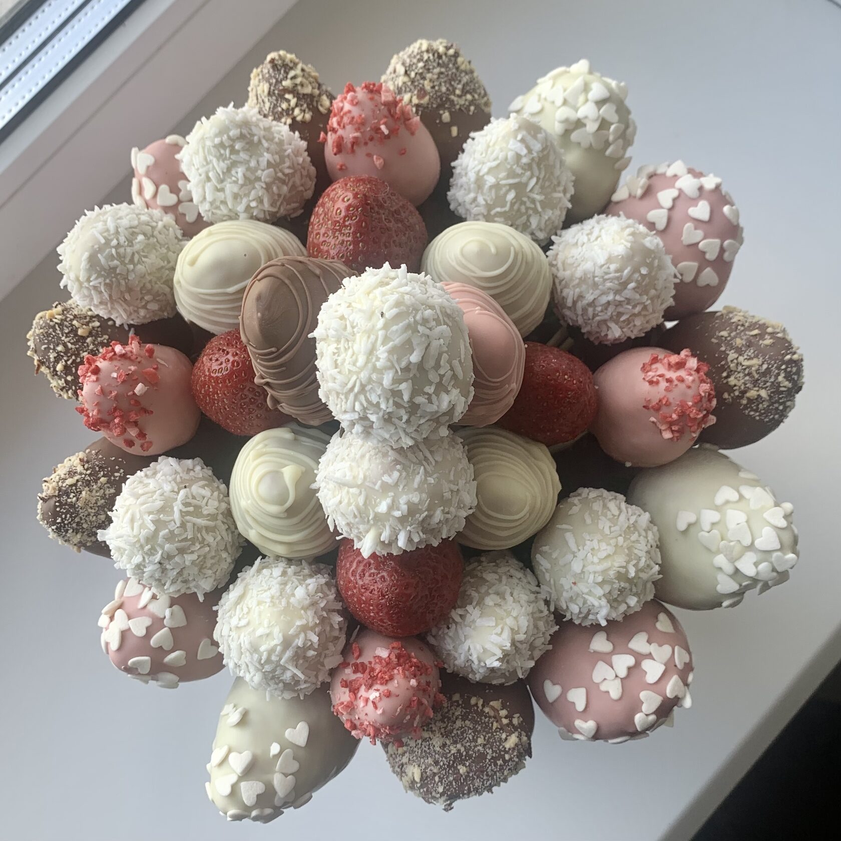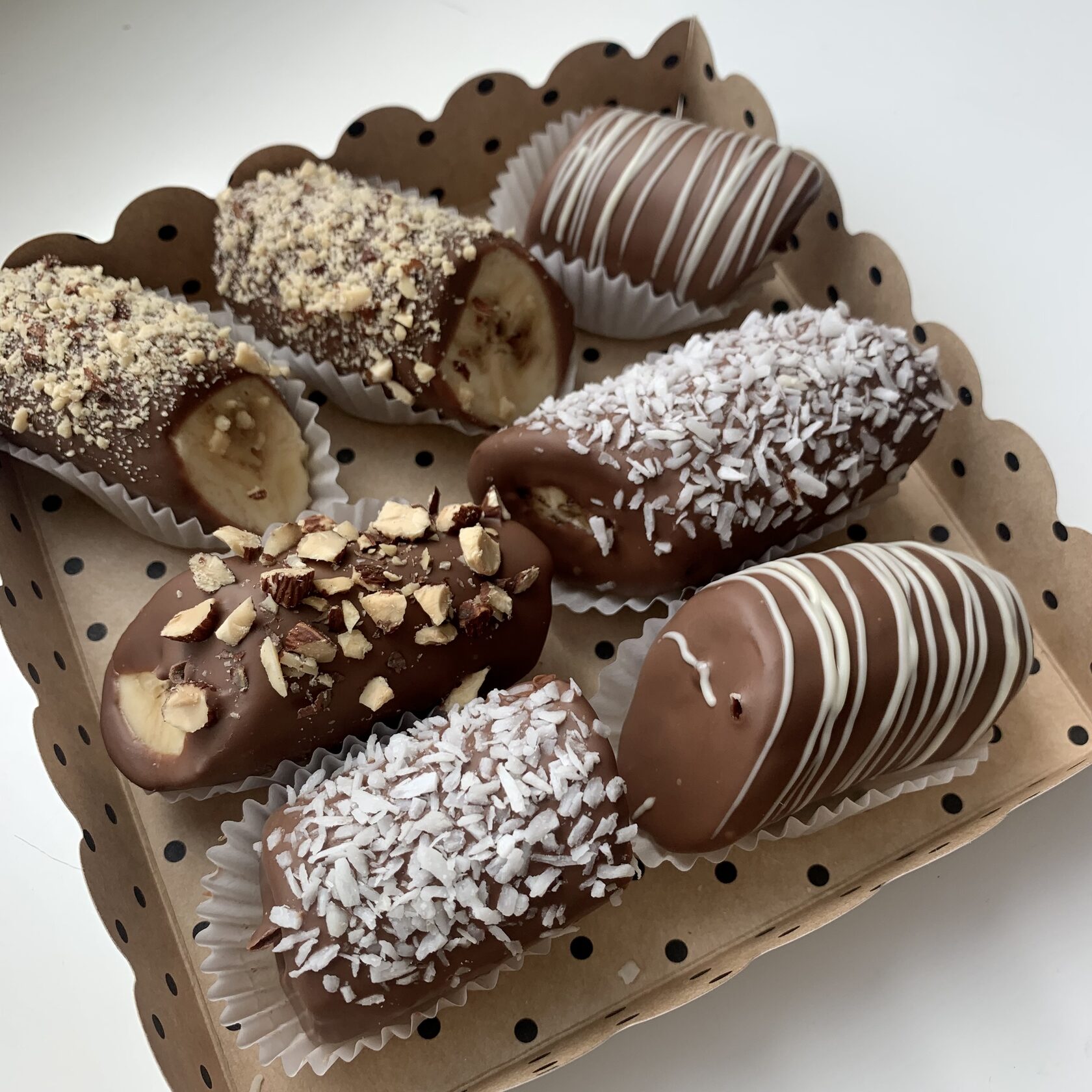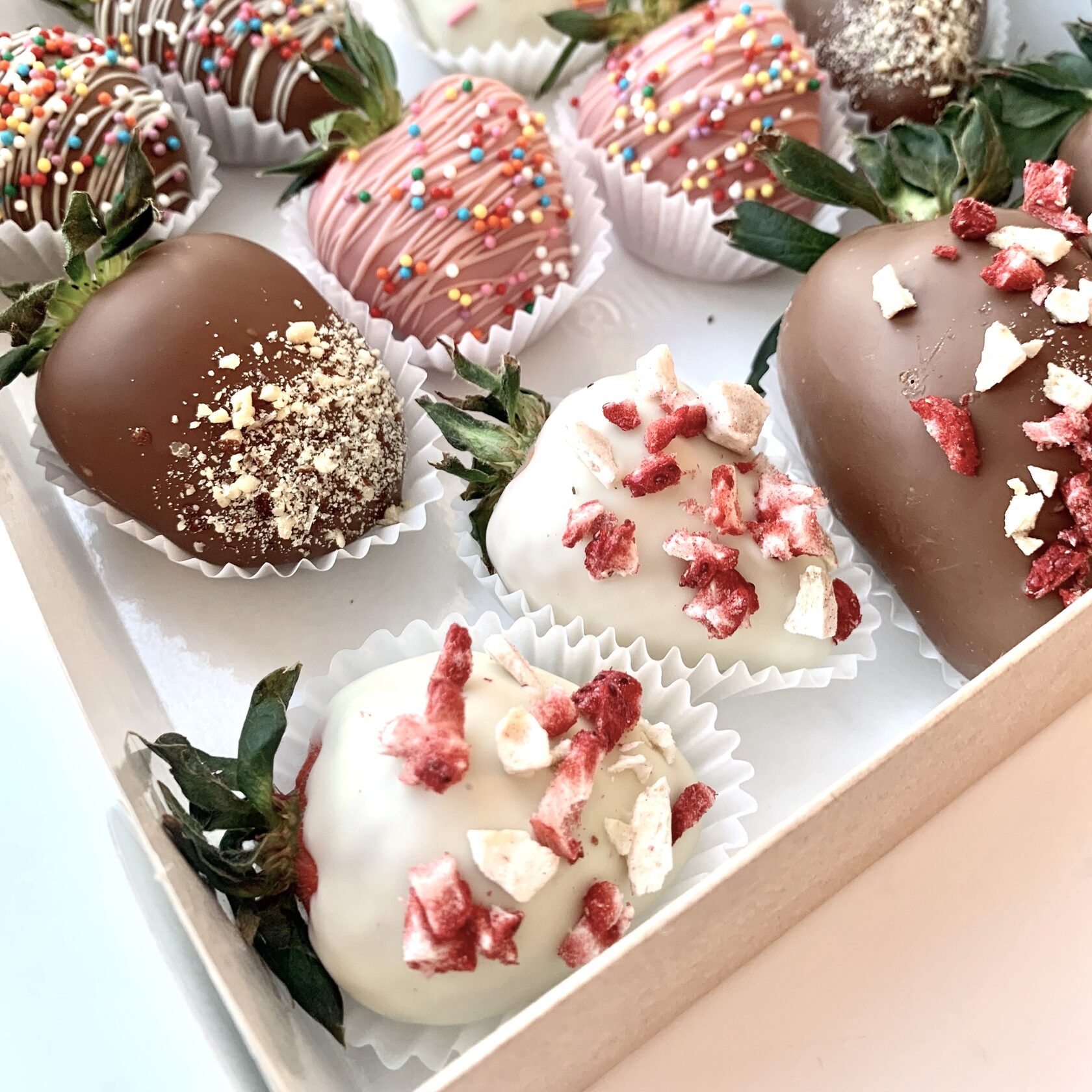 🍓в белом (с добавлением натурального гипоалергенного пищевого красителя) бельгийском шоколаде с кондитерской посыпкой (2 шт). 🍓в белом бельгийском шоколаде с кондитерской посыпкой (2 шт). 🍓в молочном бельгийском шоколаде с украшением из белого шоколада и кондитерской посыпки (2 шт). 🍓в молочном бельгийском шоколаде с дробленным орехом (2 шт). 🍓в белом молочном шоколаде с сублимированной клубникой и бананом (2 шт). 🍓в молочном бельгийском шоколаде с сублимированной клубникой и бананом (2 шт).