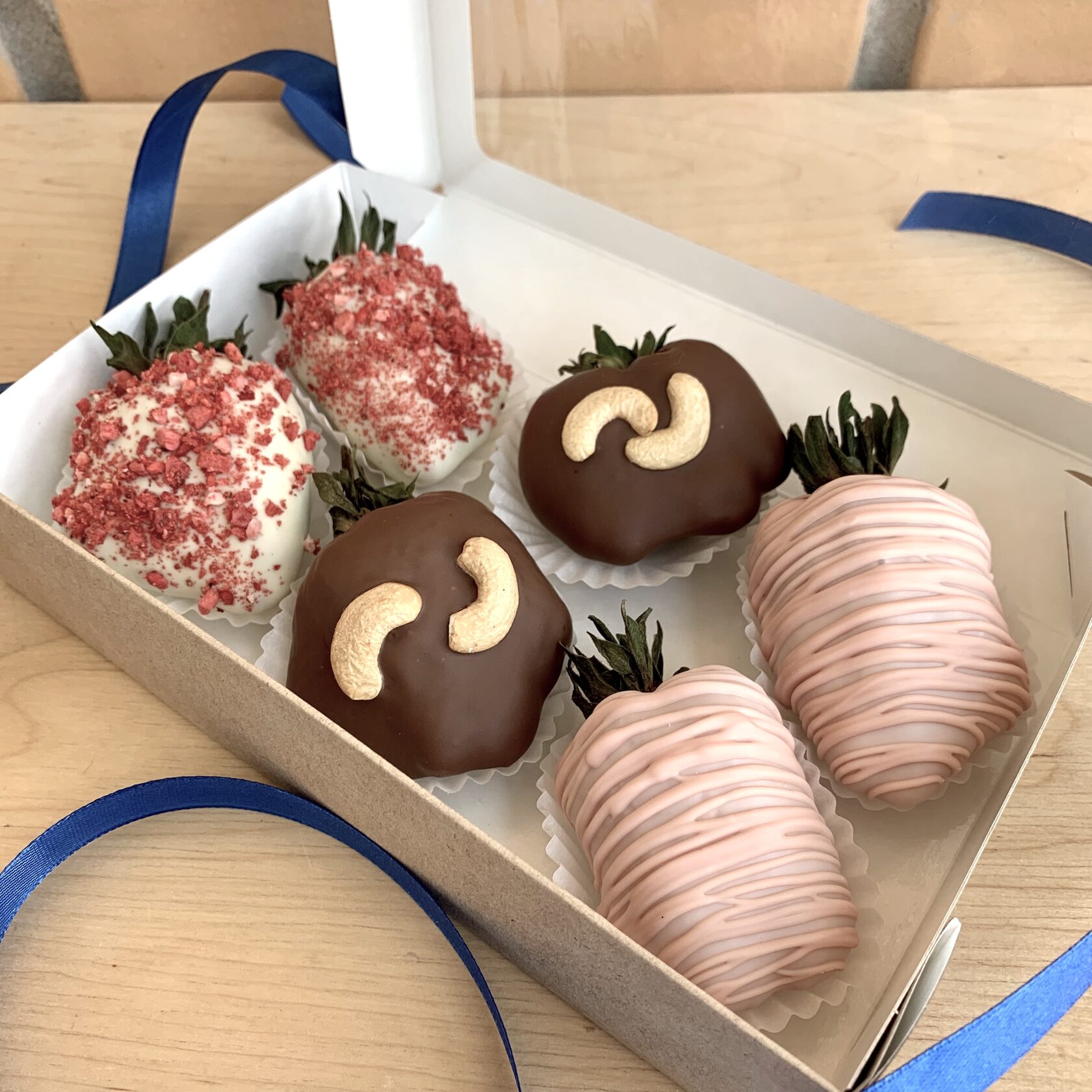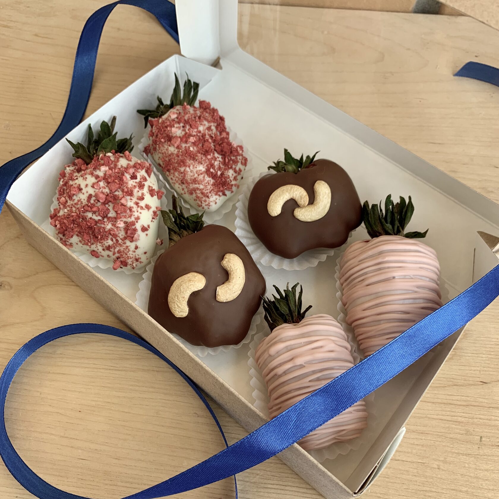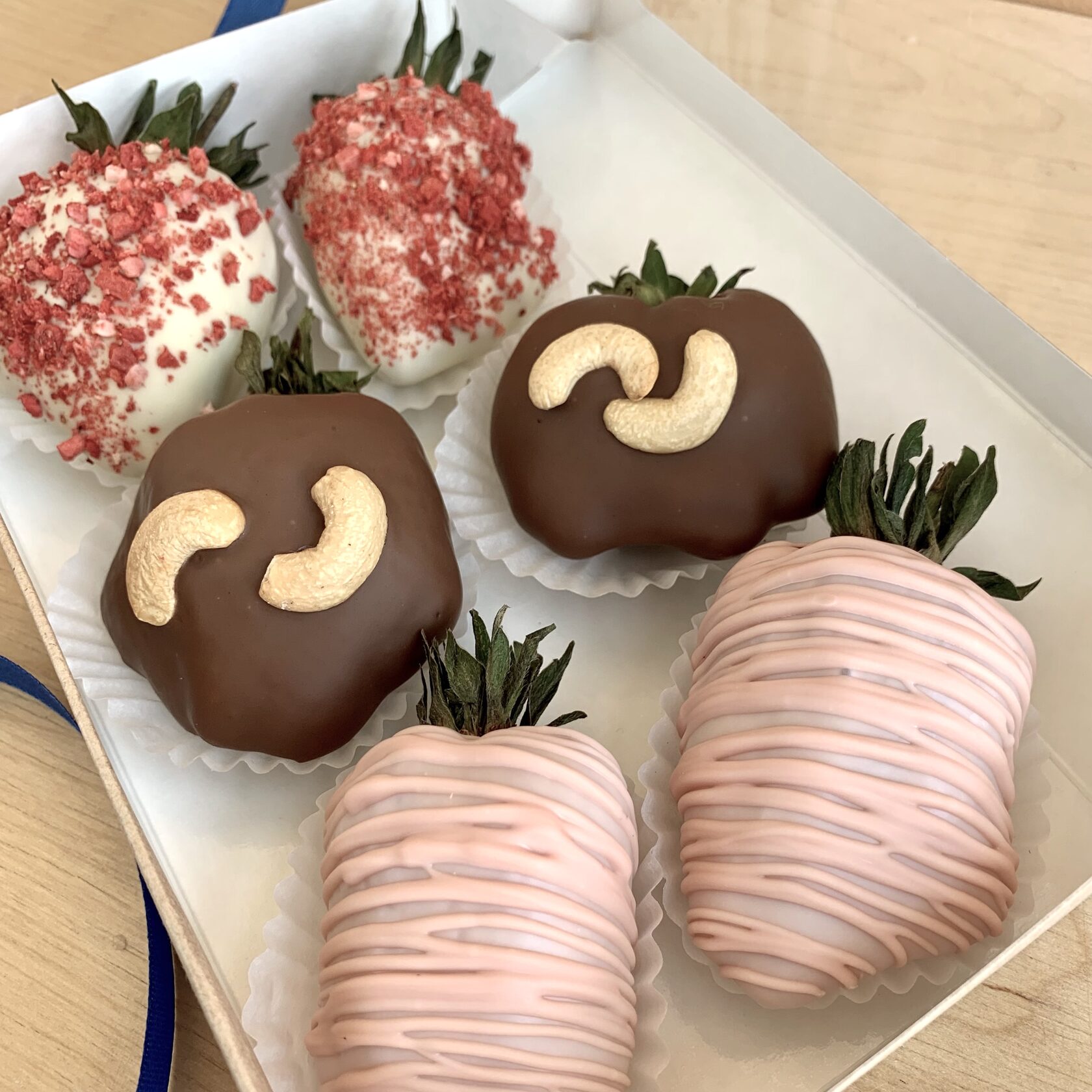 🍓в белом бельгийском шоколаде с сублимированной клубникой и бананом (2 шт.) 🍓в молочном бельгийском шоколаде с сублимированной клубникой и бананом (2 шт.) 🍓в молочном бельгийском шоколаде с дробленным орехом (2 шт.) 🍓в молочном бельгийском шоколаде с украшением из белого шоколада и кондитерской посыпки (2 шт.) 🍓в белом бельгийском шоколаде (с добавлением натурального гипоалергенного пищевого красителя) с украшением из белого шоколада и кондитерской посыпки (2 шт.)