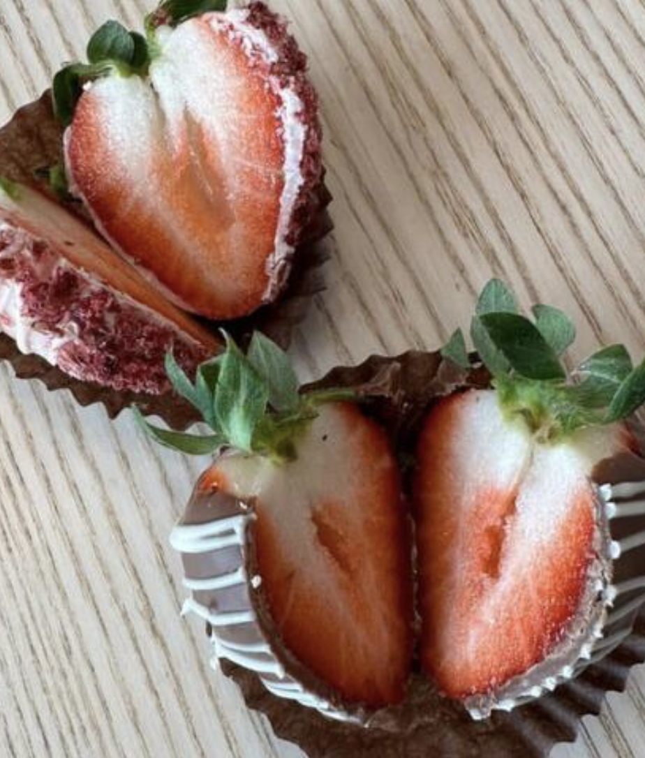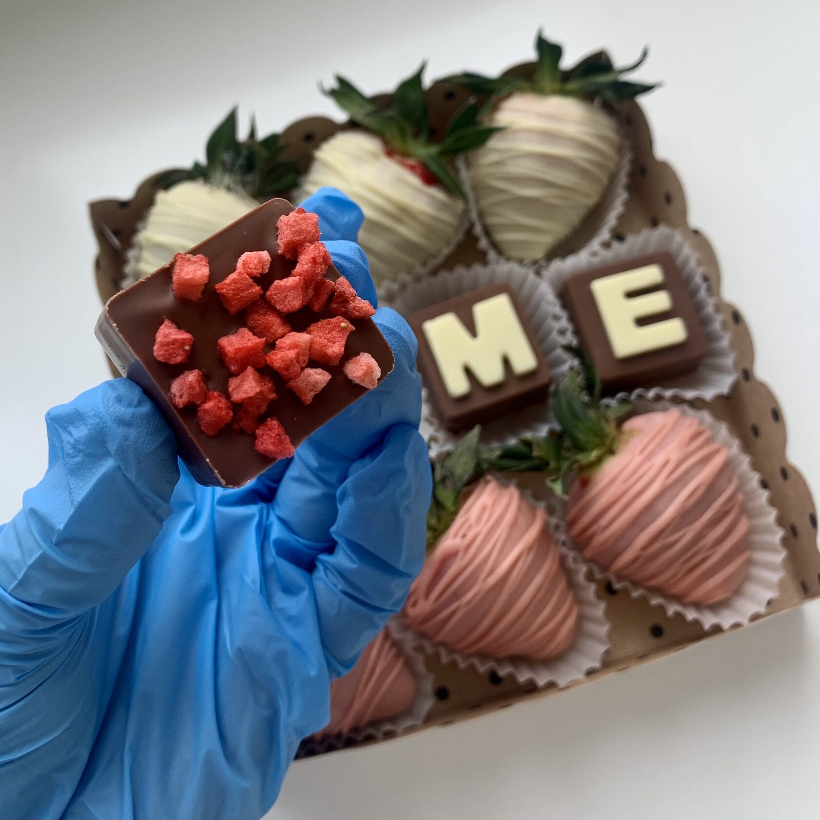 🍓 В белом бельгийском шоколаде с посыпкой из сублимированной клубники и банана (2 шт.) 🍓 в молочном бельгийском шоколаде с посыпкой из сублимированной клубники и банана (2 шт.)